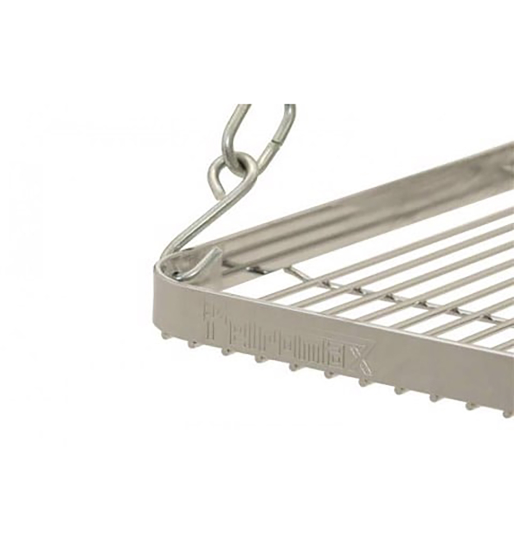 Nhờ cấu trúc lỗ gắn dây, giá treo đứng chắc chắn trên bốn chân và có thể sử dụng nhanh chóng. Nhờ thanh ngang dài 115 cm, bạn có thể dựng bếp cắm trại của mình trên một hoặc nhiều hố lửa. Bạn có thể treo dụng cụ nấu nướng của mình ở các độ cao khác nhau phía trên ngọn lửa bằng ba móc có độ dài khác nhau. Bằng cách này, bạn có thể điều chỉnh nhiệt độ nấu thức ăn và đồ uống theo ba giai đoạn nếu muốn. Vỉ nướng có xích treo có thể điều chỉnh độ dài linh hoạt. Viền xung quanh giữ cho thức ăn nướng cũng như chảo và nồi của bạn ở đúng vị trí. Với bếp ngoài trời chuyên nghiệp này, ngay cả thực đơn lửa trại nhiều món cũng không còn là thách thức đối với tất cả những người bnấu ăn ngoài trời