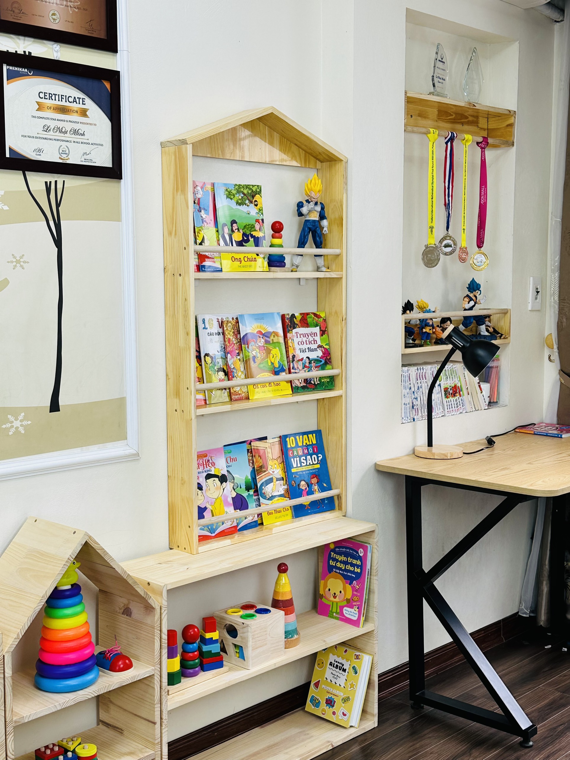 ✨Giá sách cho bé, giá để sách treo tường hình ngôi nhà bằng Gỗ, trang trí phòng trẻ em