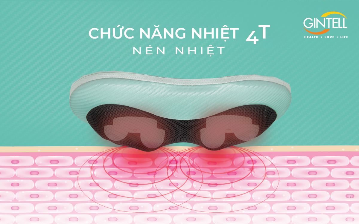 gối massage Tính năng làm nóng bằng nhiệt hồng ngoại cải thiện khả năng trao đổi chất giữa các tế bào, tăng khả năng nuôi dưỡng lưu thông tuần hoàn máu, làm thon gọn vóc