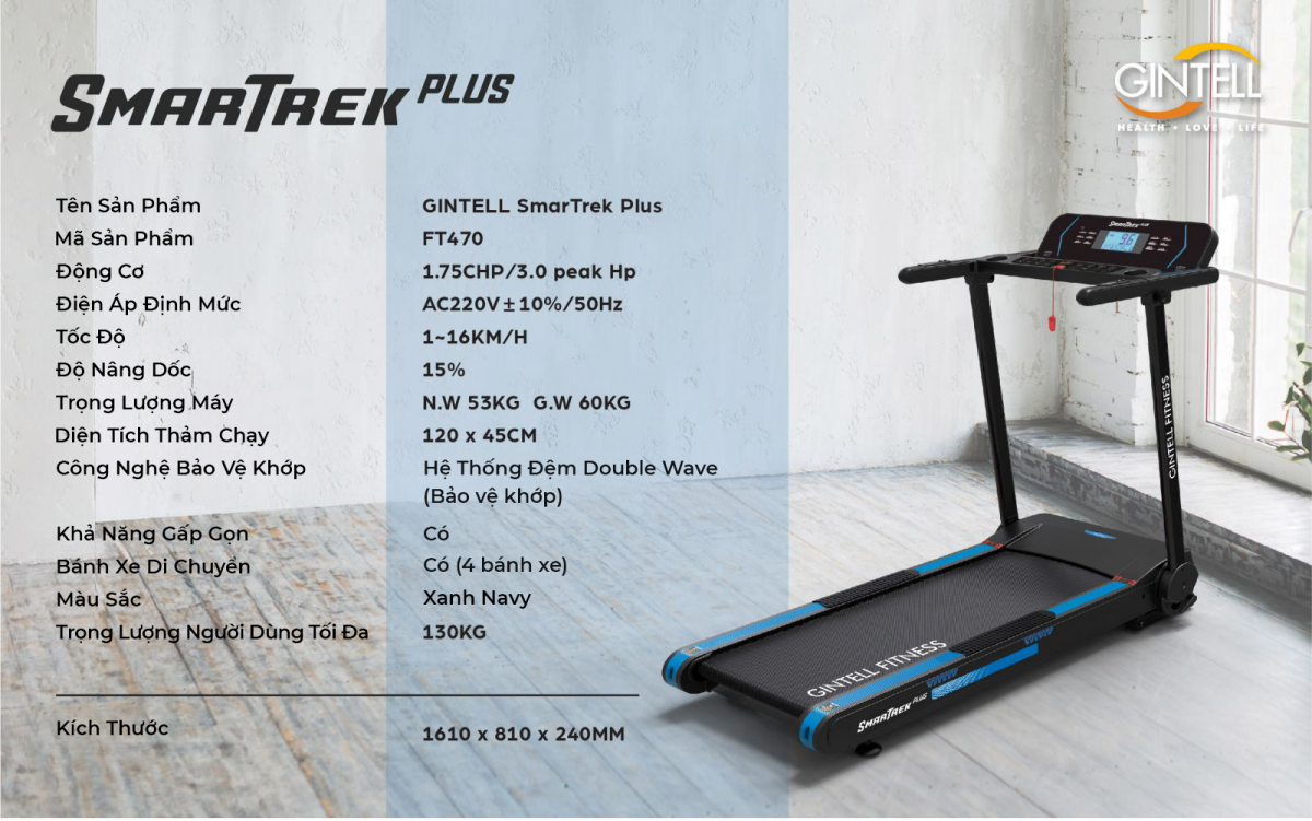 • Tên sản phẩm: MÁY CHẠY BỘ GINTELL SMARTREK PLUS