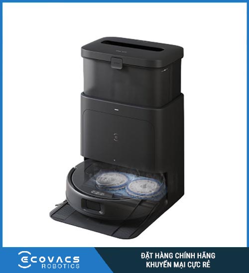 - CÔNG NGHỆ VÀ CHẾ ĐỘ HOẠT ĐỘNG ️Bộ sản phẩm gồm Robot và Máy hút bụi giúp bạn dọn dẹp nhà sạch bóng ️Trạm sạc tự động hút rác kép cho robot và máy hút bụi cầm tay ️Tự động nâng giẻ thông minh, dễ dàng xử lý và làm sạch nhiều bề mặt; ️Làm sạch giẻ bằng nước nóng 60 độ và sấy khô, mang đến tỷ lệ giặt sạch lên đến 96%; ️Trang bị công nghệ điều hướng AIVI 3D 2.0 và TrueMapping 3.0, tránh chướng ngại vật và lập bản đồ chính xác ️Chế độ AI thân thiện với vật nuôi ️Hệ thống lọc HEPA: Có thể hút 99.97% các loại bụi mịn 0,3 µm, và cấu trúc sáu lốc xoáy hình nón, tránh tình trạng tắc nghẽn; ️Lực hút 8700Pa: Công suất này giúp người dùng hút bụi ở những kẽ hở và giặt thảm nhanh chóng; ️Bàn chải lên tới 200mm: Đem lại hiệu quả trong việc làm sạch một lần lên tới 19%, tối ưu thời gian dọn dẹp nhà cửa ️Trợ lý giọng nói YIKO 2.0, điều khiển dễ dàng qua app Ecovacs Home