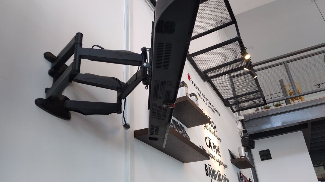 Thông số kĩ thuật - Vesa: 400x400 mm - Xoay 180 độ tại các khớp nối - Thiết kế kẹp nhựa đế nẹp dây điện - Khoảng cách kéo dãn tối đa: 468mm - Thu