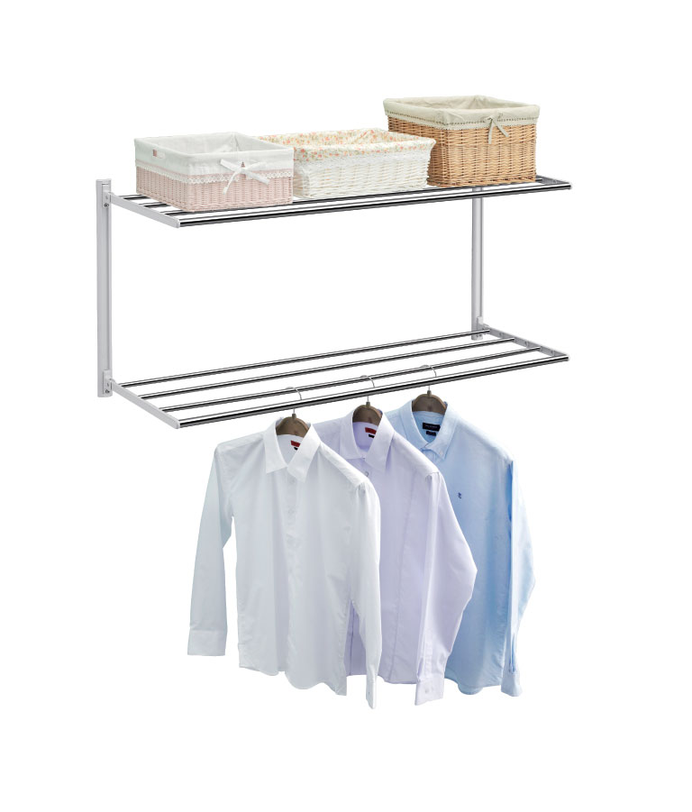 Giá để đồ, treo quần áo hai tầng gấp gọn chất liệu Inox Wellex RH2100, KT 1040x460x350 mm Hãng sản xuất: Wellex Xuất xứ: Hàn Quốc