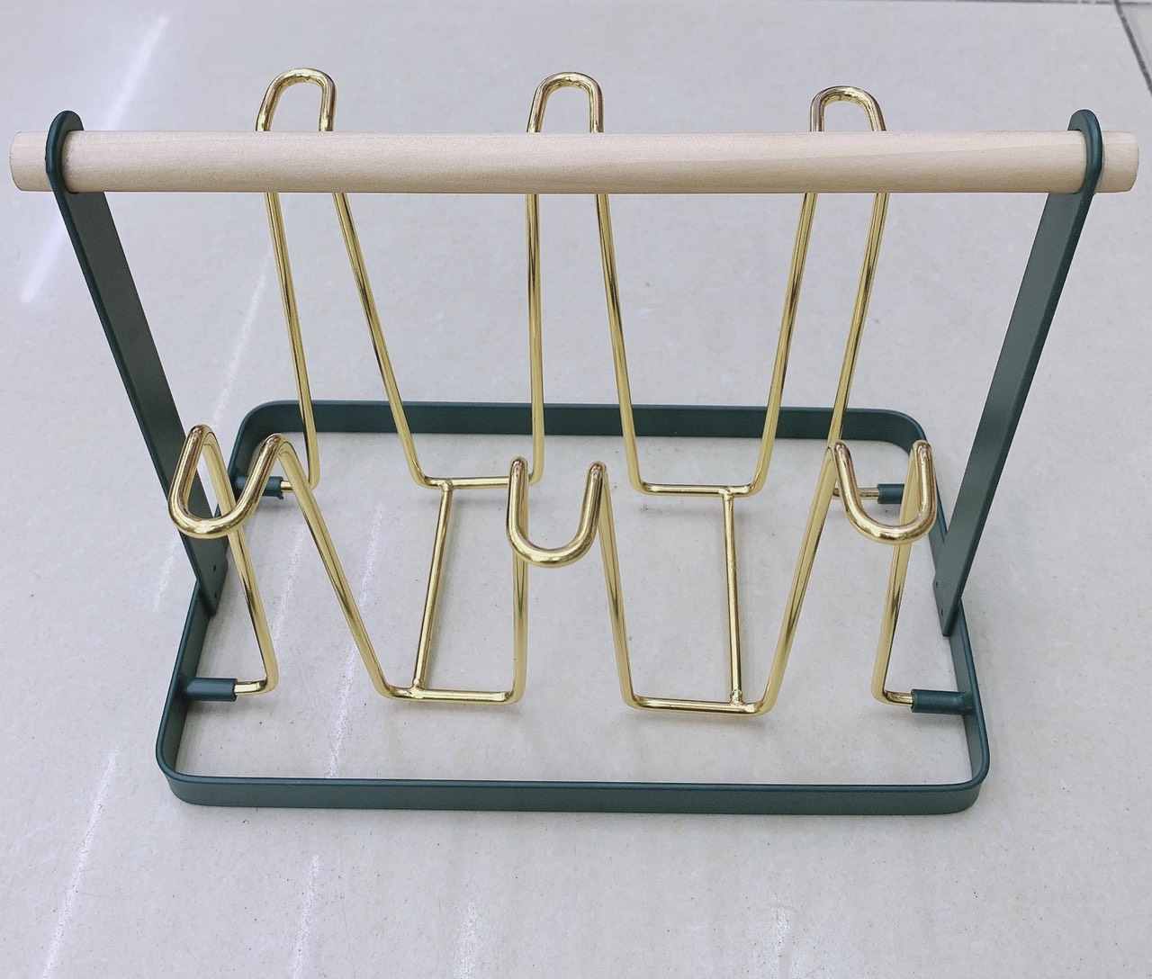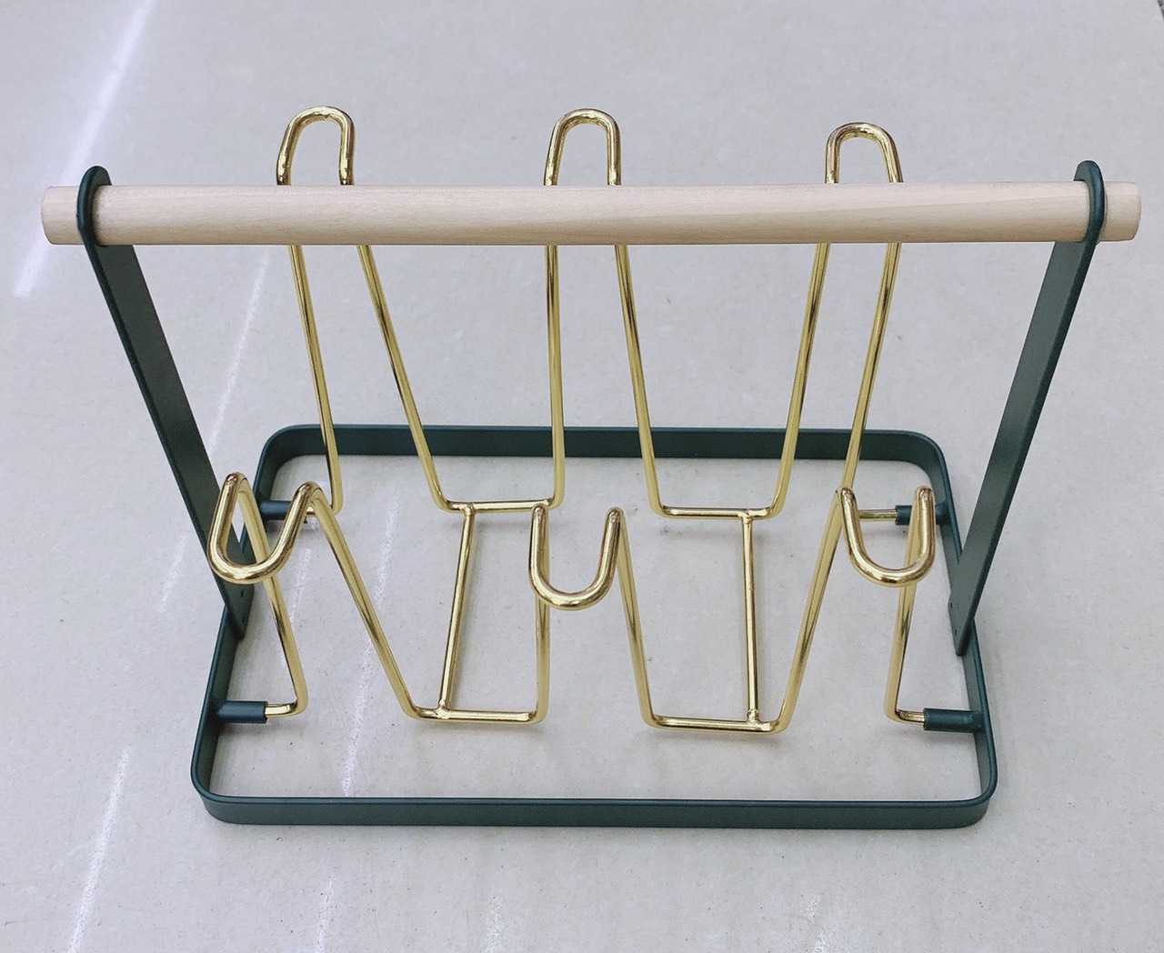 ✨Giá úp cốc chữ nhật kim loại mạ vàng kết hợp màu xanh cổ vịt sang trọng cao cấp - ANTH272