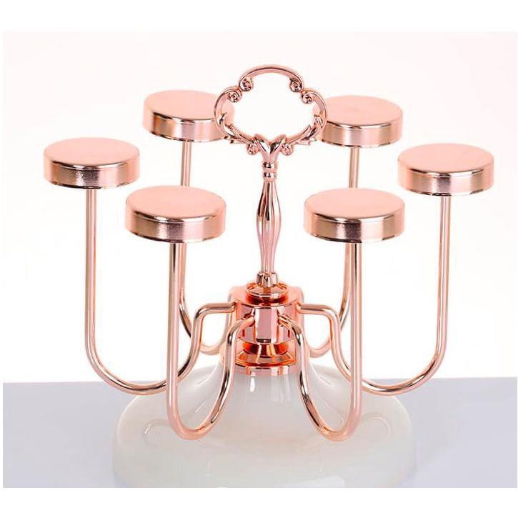 Giá úp cốc 6 chiếc trụ inox màu vàng hồng đế đá Giá cắm 6 chiếc cốc dạng gọn Giá có khay hứng nước Chất liệu sắt sơn tĩnh điện cao cấp màu vàng cực