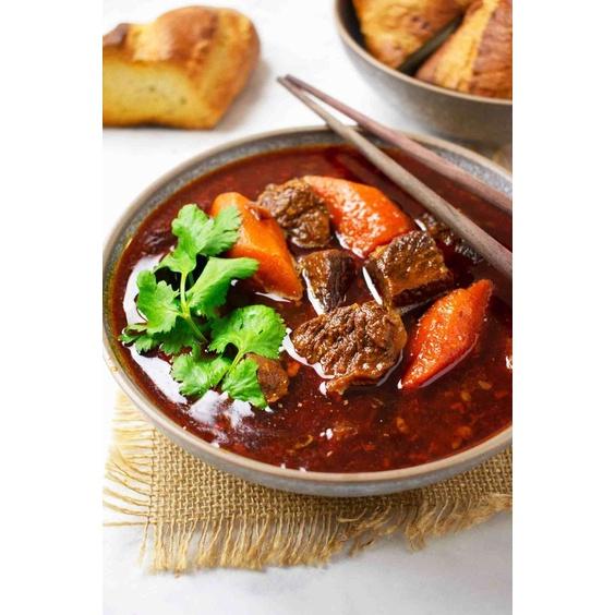 - Sản xuất theo công thức truyền thống, với bí quyết chiết xuất thảo mộc tự nhiên kết hợp gia vị hoàn chỉnh, giúp nước soup bò kho thêm đậm đà mang hương vị truyền thống mà không tốn quá nhiều thời gian của bạn.