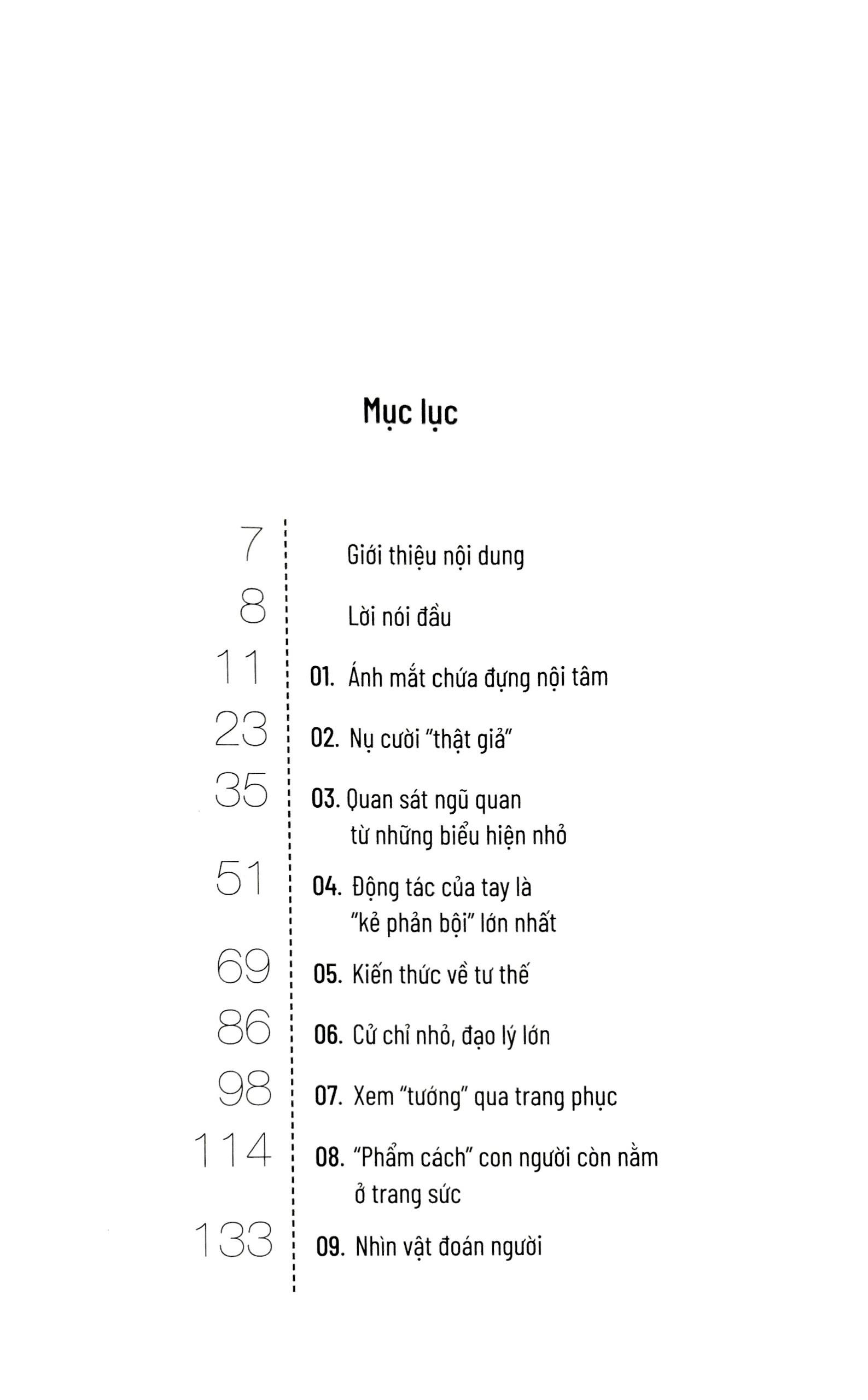 Trên cơ sở những phát hiện mới nhất về tâm lý học ứng dụng và hệ thống thuật đọc tâm, tác giả đã chắt lọc những nội dung tinh túy và đúc rút 23 điểm then chốt giúp chúng ta dễ dàng “đọc vị” bất cứ ai trong quá trình giao tiếp hoặc đàm phán. Với cách trình bày sinh động, sâu sắc và dễ hiểu, chắc chắn bạn đọc sẽ dễ dàng tiếp thu và tiết kiệm tối đa thời gian của m.ình.