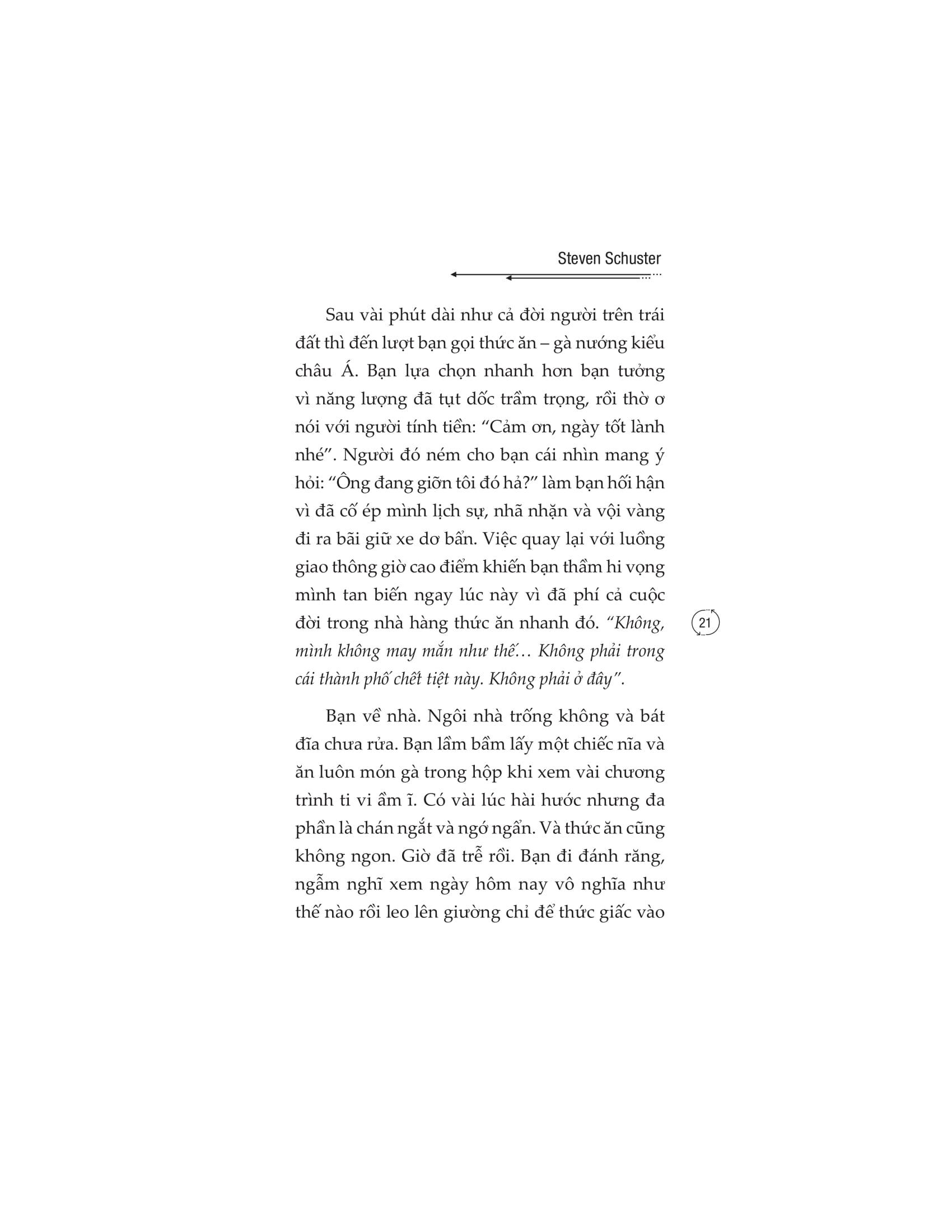 Steven Schuster trước hết là một người chồng, người cha hạnh phúc của hai đứa con kháu khỉnh. Sinh ra trong một gia đình nhập cư, anh hiểu rõ nhất cuộc đấu tranh của con người và đã dành cả cuộc đời mình để tìm ra giải pháp cho chúng. Anh ấy là một nhà nghiên cứu tâm lý con người nhiệt huyết. Anh đã chọn viết lách là sự nghiệp chính của mình và có nhiều cuốn sách thuộc top bán chạy trên Amazon.