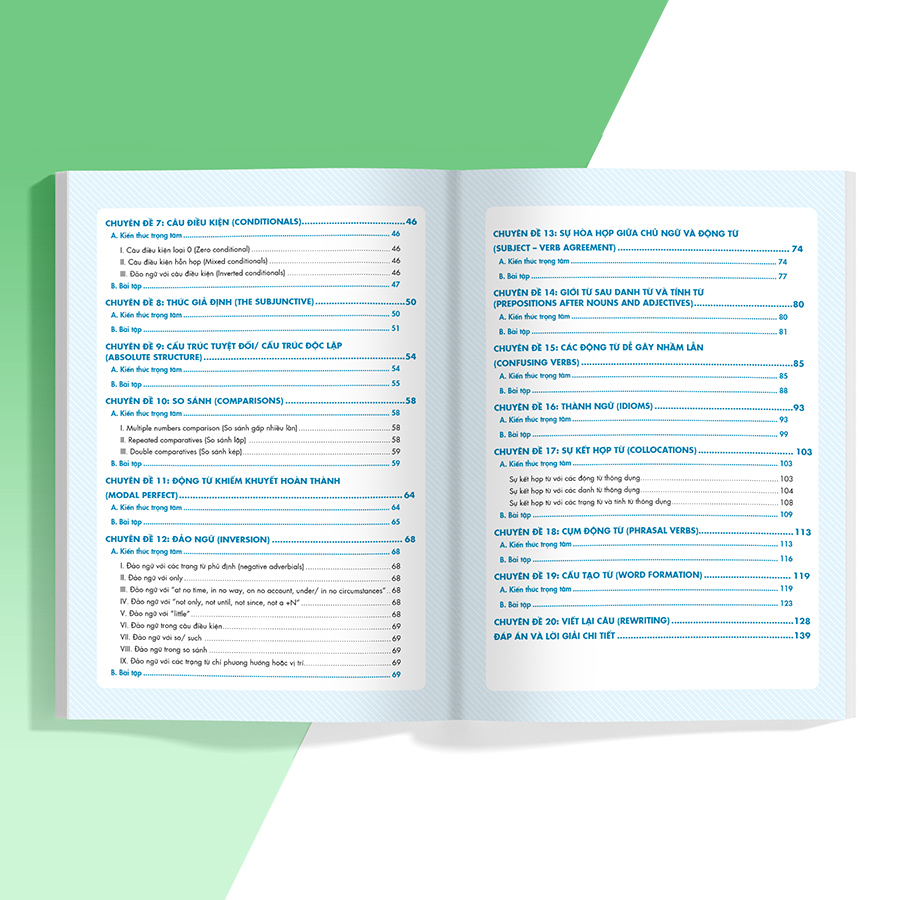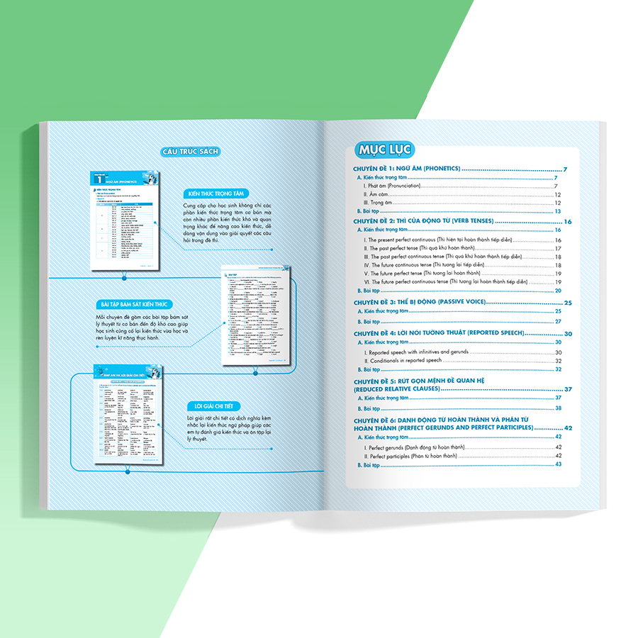 Cuốn sách bao gồm 3 chuyên đề lớn: Ngữ âm, Từ vựng và Ngữ pháp Trong mỗi chuyên đề lớn sẽ được chia thành các chủ đề bao gồm:  Các kiến thức trọng tâm.