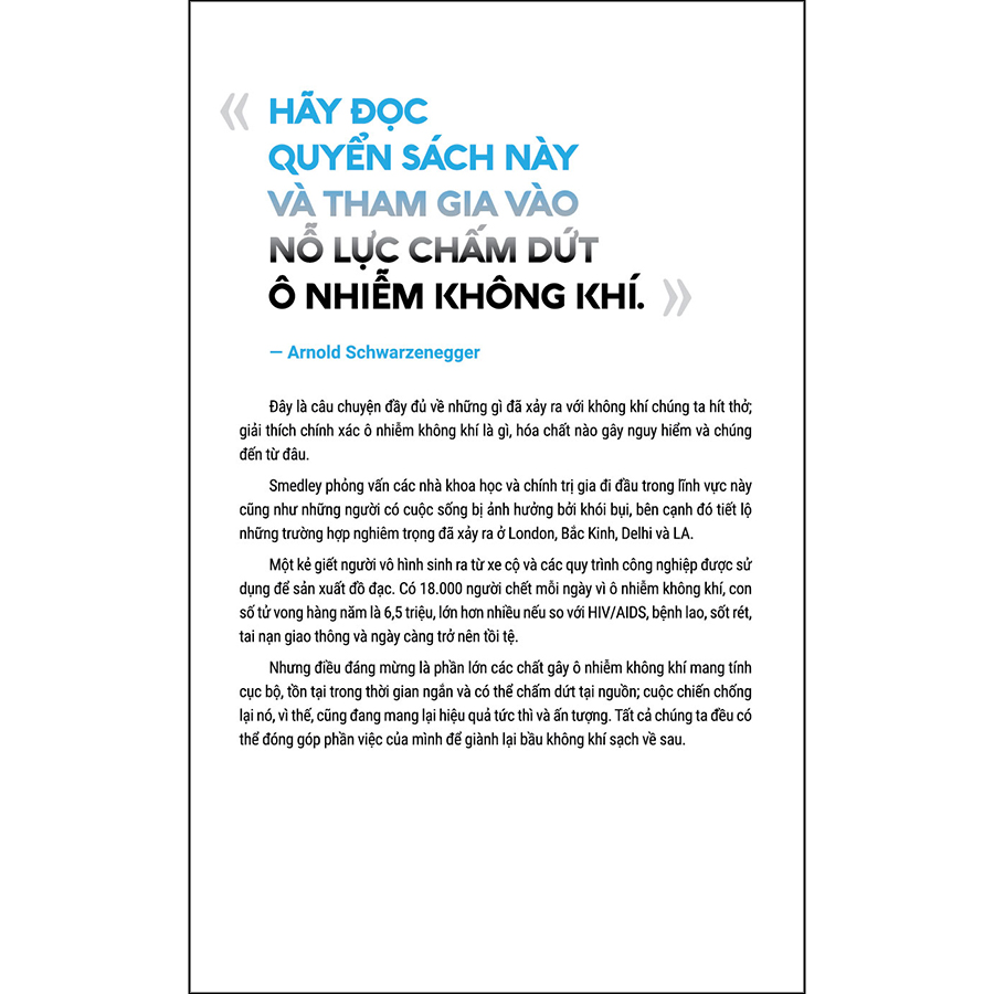 "Hãy đọc quyển sách này khi tham gia nỗ lực chấm dứt ô nhiễm không khí" - (Arnold Schwarzenegger)“Một quyển sách tuyệt vời đưa bạn qua những câu chuyện hấp dẫn lẫn đáng sợ về ô nhiễm không khí, đồng ...