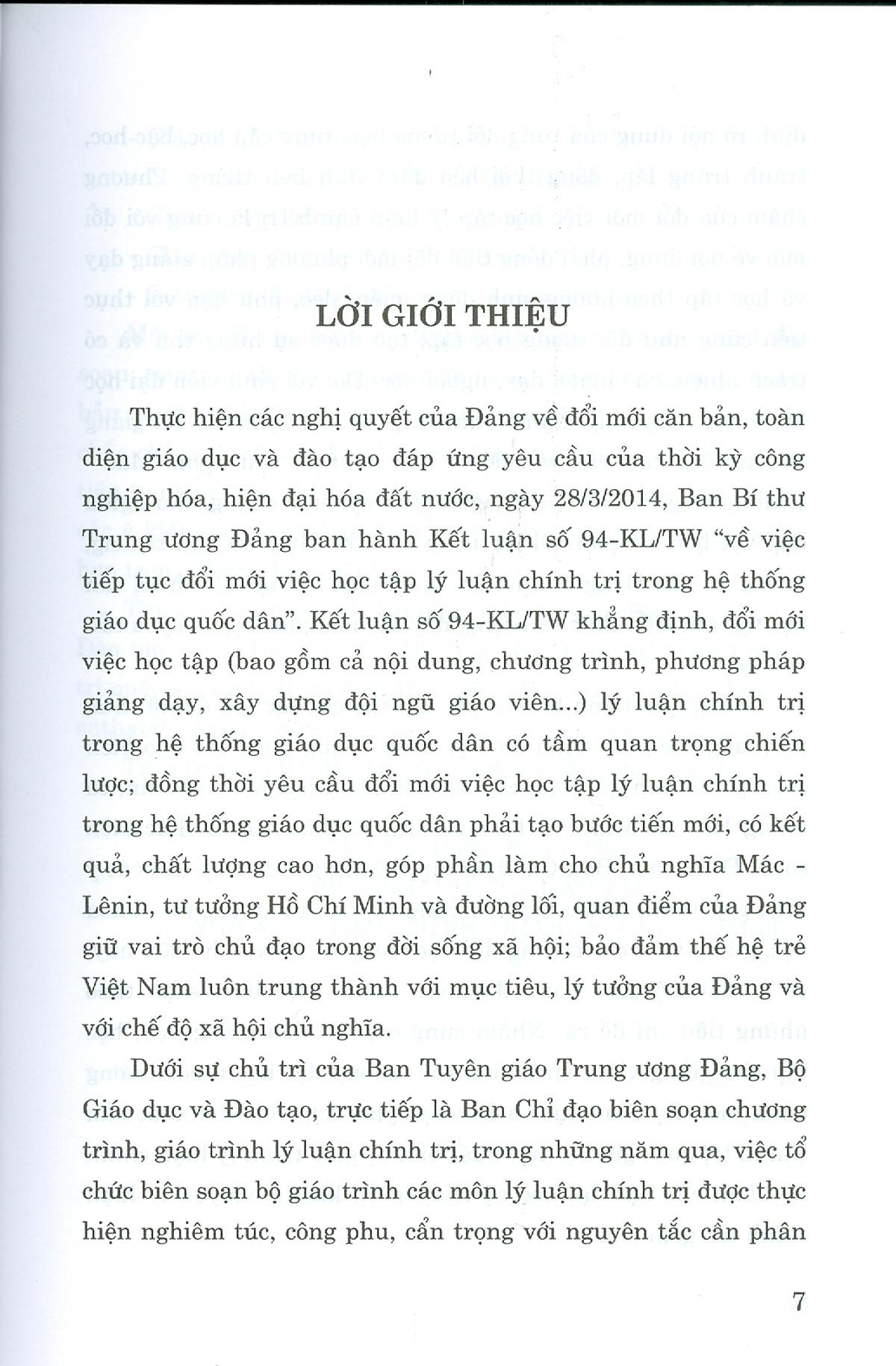 Bộ giáo trình lý luận chính trị gồm 5 cuốn dành cho bậc đại học hệ không chuyên lý luận chính trị. Bộ sách là tài liệu giảng dạy, học tập cho giảng viên, sinh