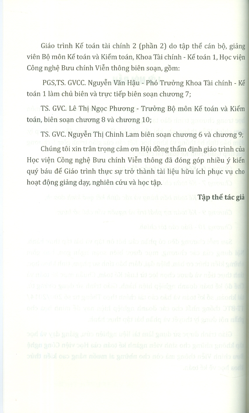GIỚI THIỆU SÁCH Nội dung của giáo trình gồm 5 chương Chương 1 - Tổ chức công tác kế toán tài chính trong doanh nghiệp Chương 2 - Kế toán vốn bằng tiền, các khoản