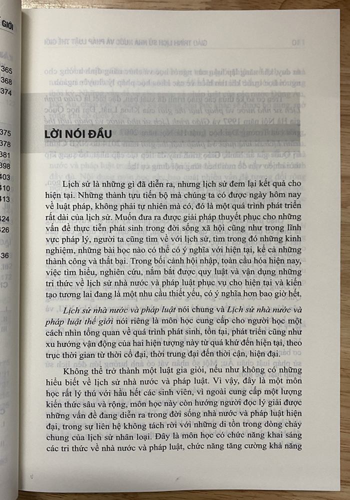 Giáo trình sẽ đáp ứng được một phần nhu cầu giảng dạy và học tập môn Lịch sử nhà nước và pháp luật thế giới của giáo viên và sinh viên, là tài liệu bổ ích cho tất cả những sinh viên, học viên cao học ngành luật học, các ngành khoa học xã hội và nhân văn, cũng như những ai quan tâm, muốn tìm hiểu một cách hệ thống những kiến thức cơ bản về lịch sử nhà nước và pháp luật thế giới.