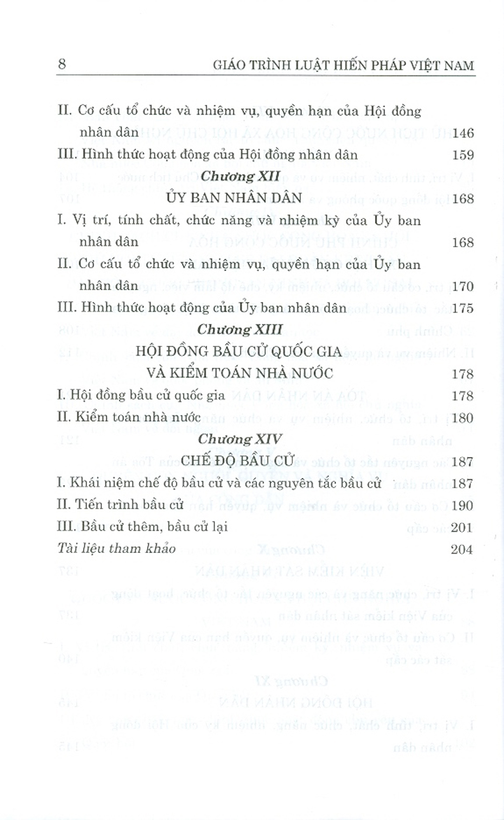 Chương 1: Những vấn đề cơ bản về luật hiến pháp. Chương 2: Hiến pháp và lịch sử lập hiến Việt Nam. Chương 3: Chế độ chính trị. Chương 4: Chế độ kinh tế. Chương