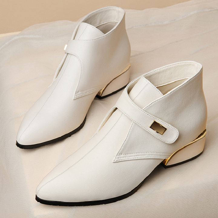 ROSATA - thương hiệu giày thời trang nữ cao cấp THUẦN VIỆT NHƯNG CHẤT LƯỢNG QUỐC TẾ ------------------ Bốt nữ trắng đế xuồng 4p RO623 ROSATA tại BCASHOP mũi vuông sành điệu kết hợp huy