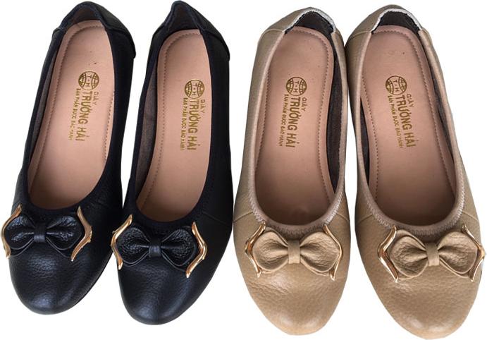 ✨Giày búp bê nữ Trường Hải màu kem da bò thật mềm mại , êm ái bền chắc,gắn nơ sang trọng, đế cao su vững trãi, thiết kế hiện đại, tinh tế, thời trang BB013