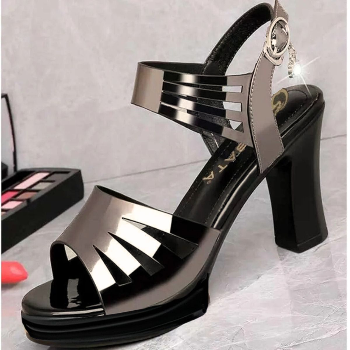 ✨Giày cao gót nữ 8p RO571 ROSATA tại BCASHOP kiểu dáng xăng đan quai hậu, bề mặt bóng bẩy trẻ trung và năng động