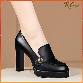 Giày cao gót nữ đẹp đế vuông 9 phân hàng hiệu rosata màu đen da ro377