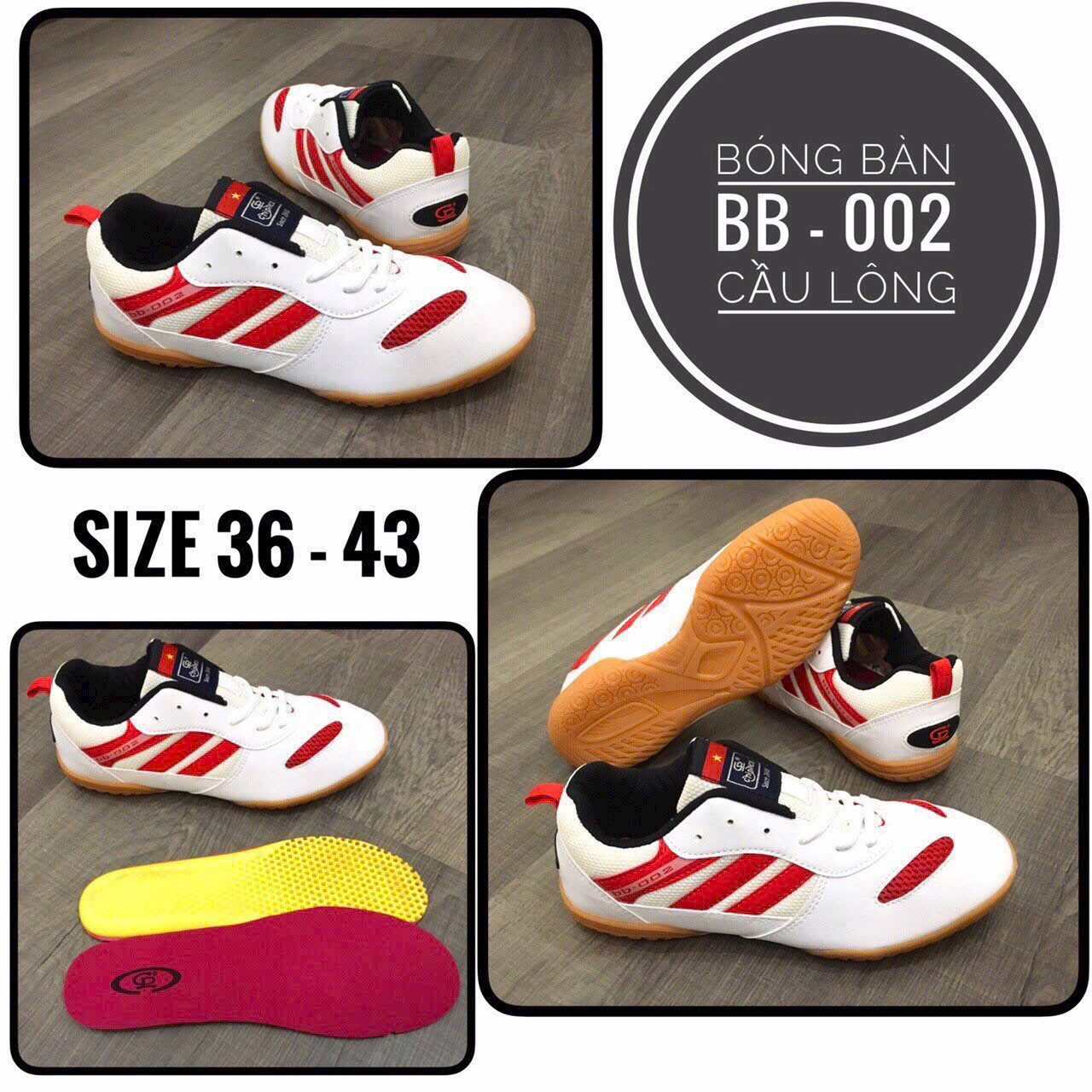 Giày Cầu lông giày bóng bàn, Giày Thể Dục Chất liệu : Cao su thiên nhiên và Da PU cùng vải lưới siêu bềnh Đế: Thiết kế cho sân bóng chuyền bóng bàn Size: 36