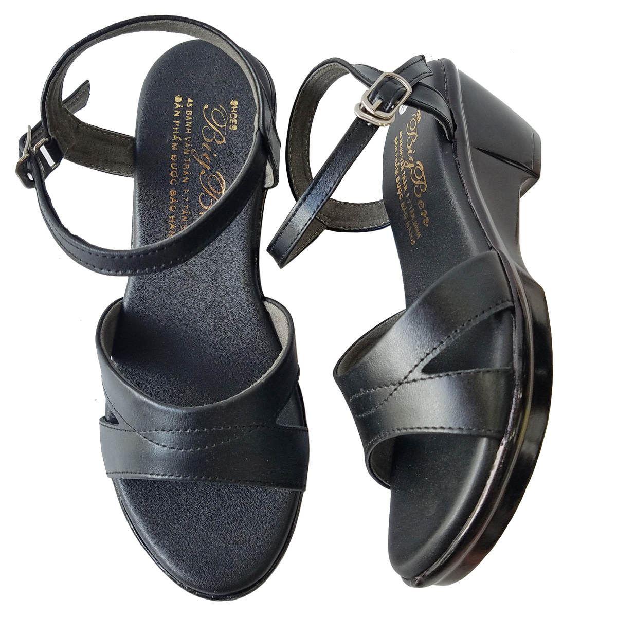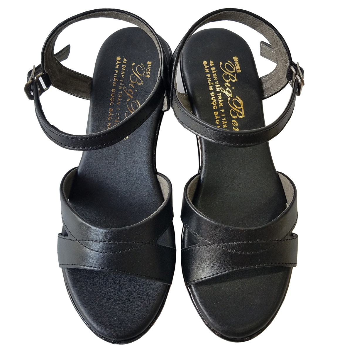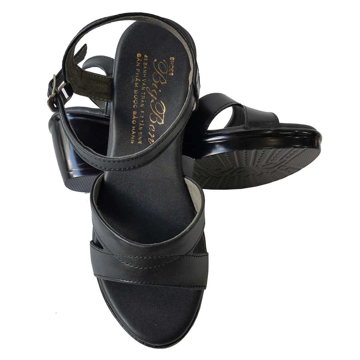 Dép xăng đan nữ đế vuông cao 5cm da bò thật