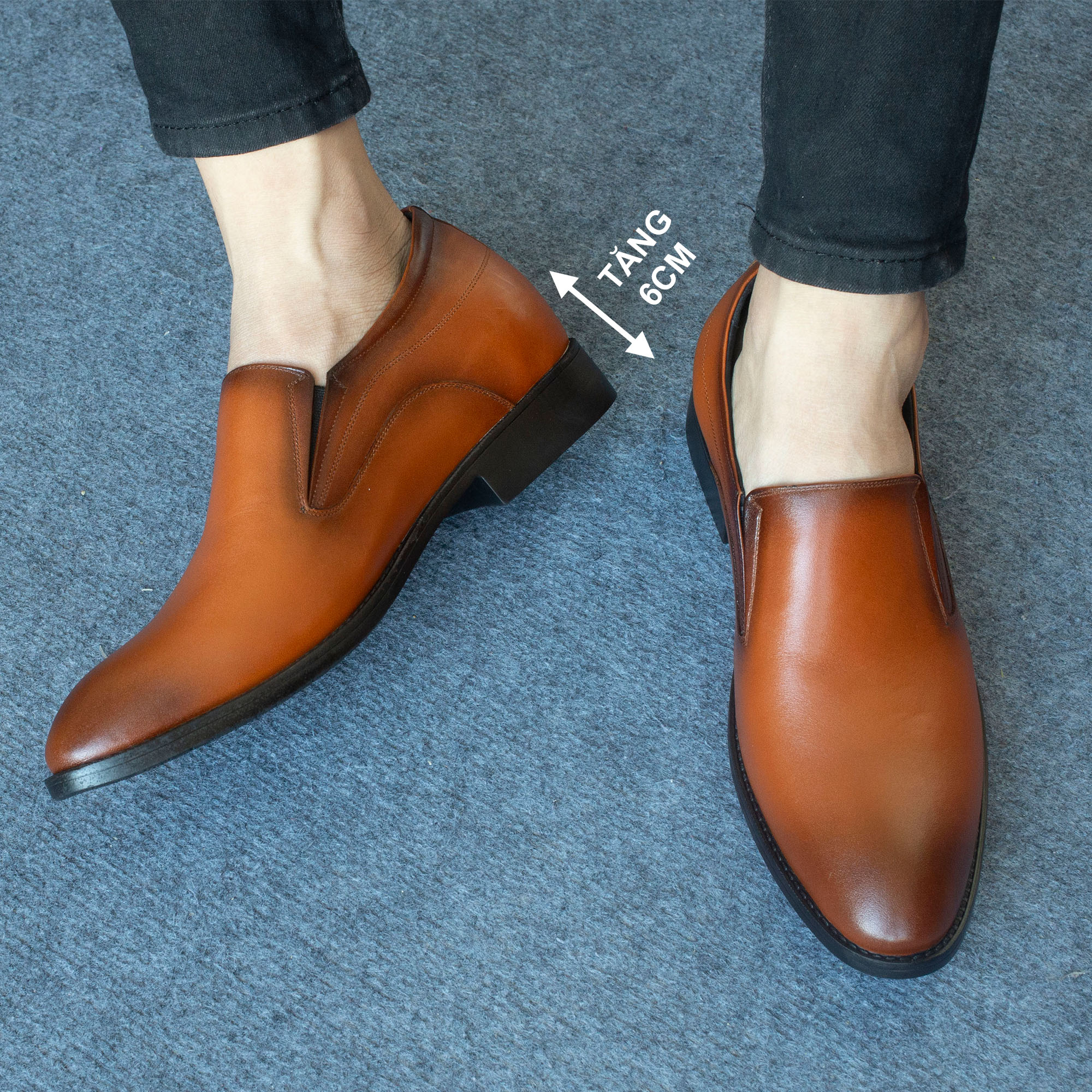 Giày lười da bò tăng chiều cao phom đẹp dành cho các
