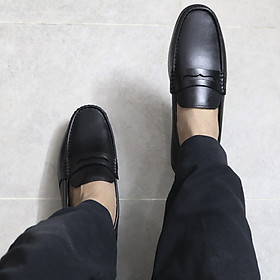 ✨Giày lười nam da bò mềm đế khâu chắc chắn mã GL66C, mũi vuông chân đế phẳng.