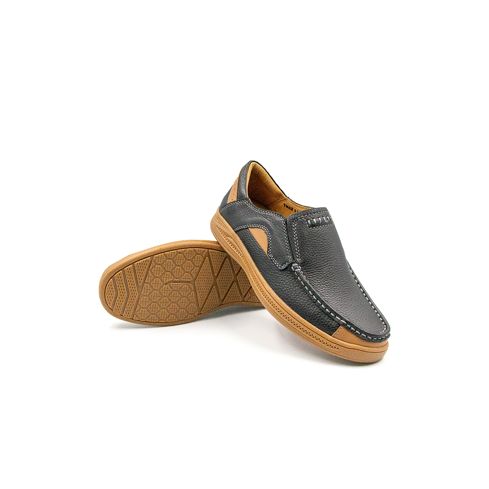 Giày Mọi Nam Da Bò Cao Cấp Huy Hoàng HT7783 - Đen Phối Da được làm từ chất liệu da bò mang lại độ bền cao cho sản phẩm. Sản phẩm được sản