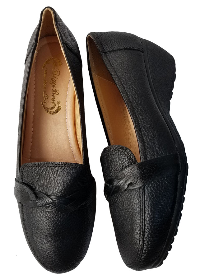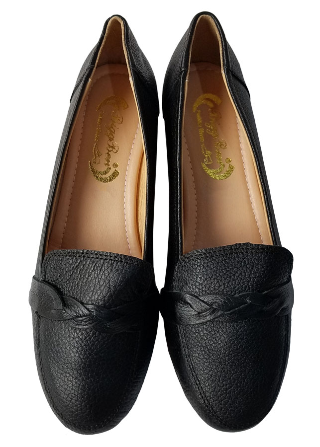 Giày Đế Bằng Giày Lười Nữ Da Bò Thật Siêu Mềm Sang Trọng Evelynv GB0916 (Đen)