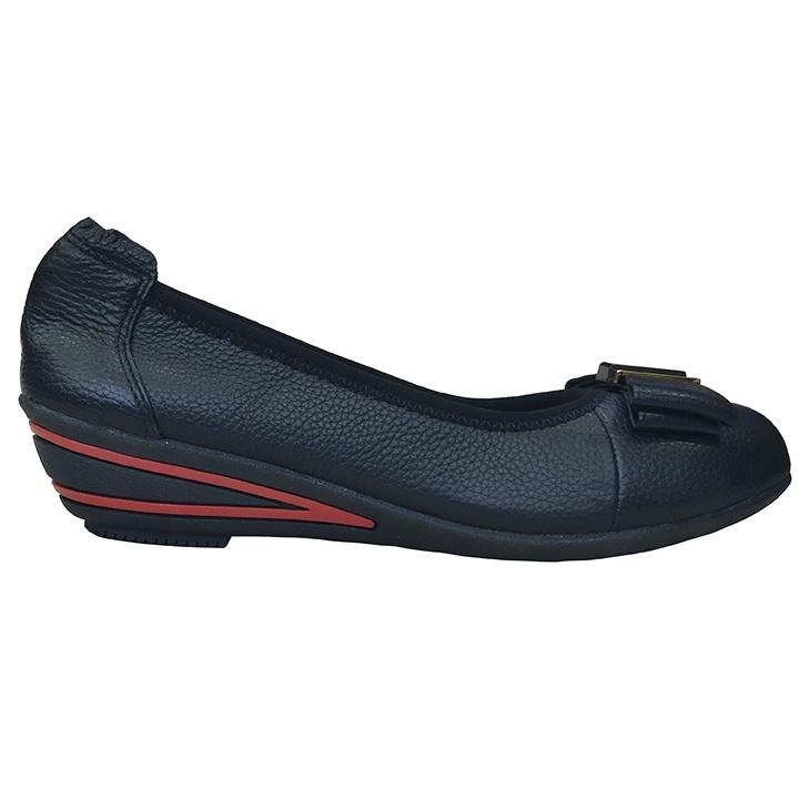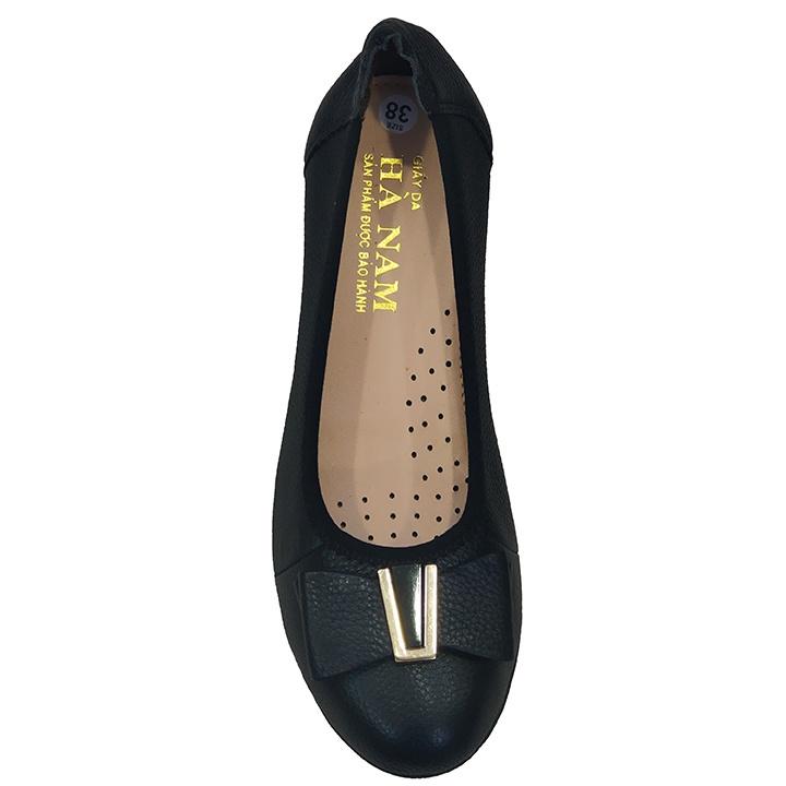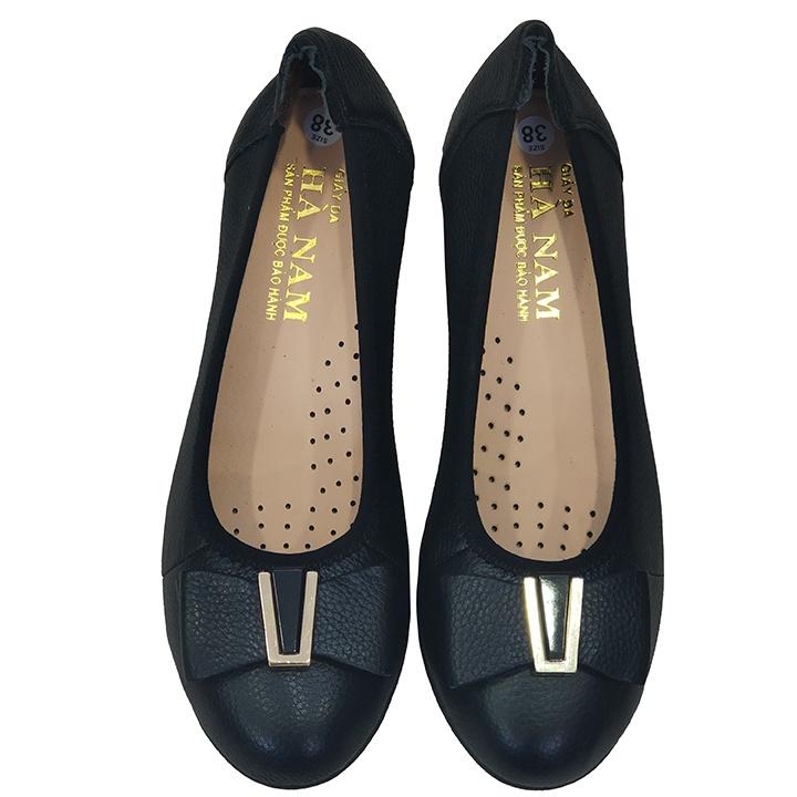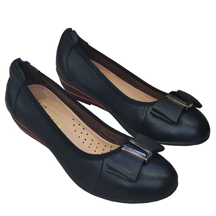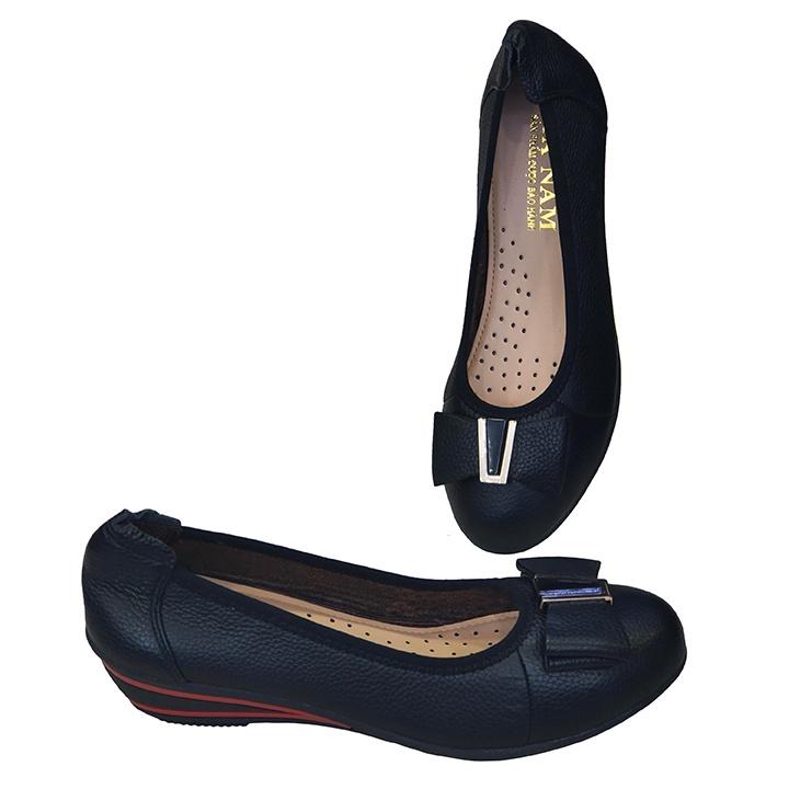 Giày đế xuồng 3cm đính nơ đen Trường Hải da bò thật
