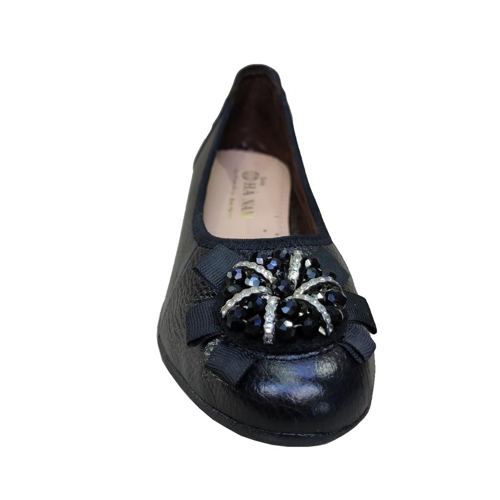 Giày đế xuồng 3cm đính nơ đen Trường Hải da bò thật