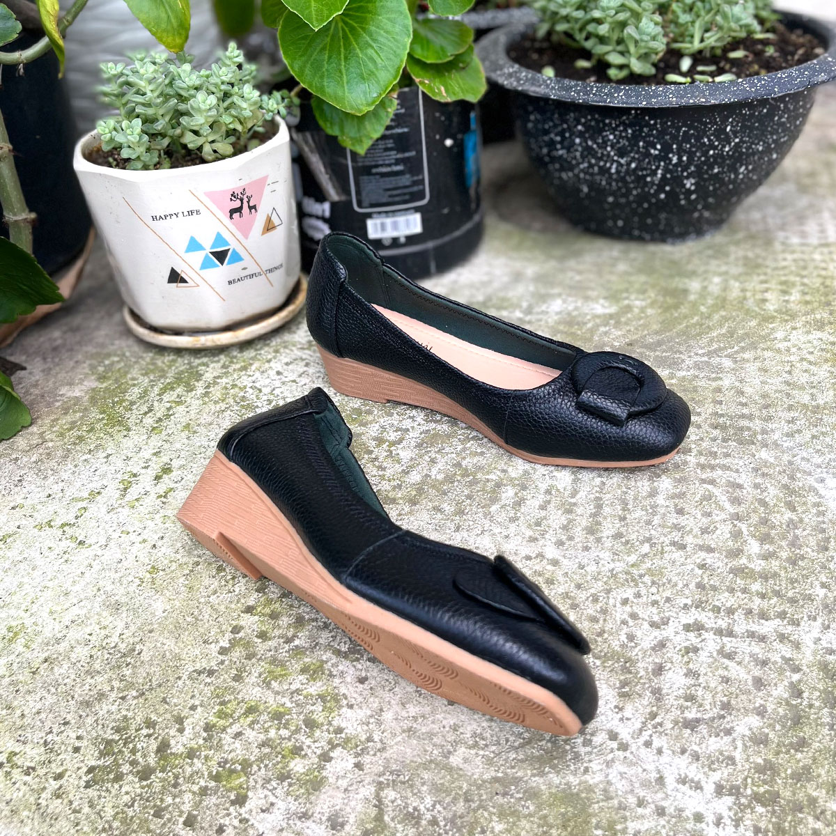 Giày đế xuồng 5cm bigsize hở mũi Trường Hải da bò thật