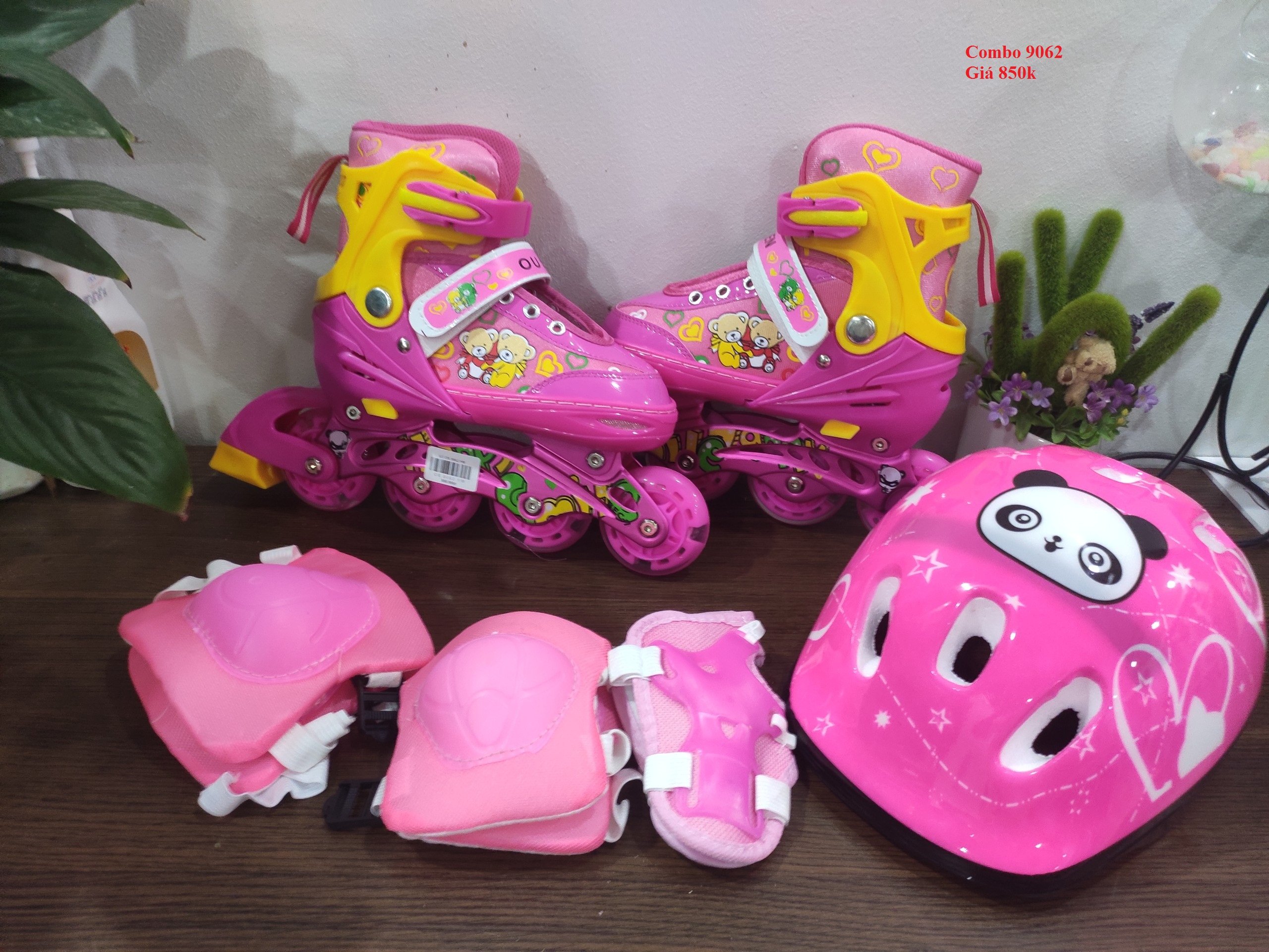 GIÀY 8 BÁNH ĐÈN PHÁT SÁNG Combo Giày Patin và Bộ Phụ Kiện Bảo Hộ Trẻ Em 9062 2 Màu Xanh/ Hồng với giá siêu yêu thương sẽ không chỉ giúp cho ba mẹ tiết