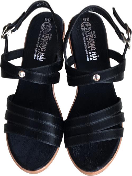 ✨Giày saldan nữ TRƯỜNG HẢI màu đen da mềm mại đế xuống cao 9.5cm thời trang cao cấp nữ XDN785