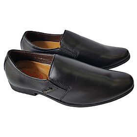 MÔ TẢ SẢN PHẨM: GIÀY TÂY NAM  – THANH LỊCH & TINH TẾ - Thiết kế sang trọng – Đơn giản mà đẳng cấp - Kiểu slip-on không dây, tiện lợi khi mang và tháo. - Form giày ôm vừa vặn, mũi tròn nhẹ giúp tôn dáng bàn chân. - Phong cách cổ điển pha hiện đại, phù hợp cho công sở, sự kiện hay gặp gỡ đối tác. - Chất liệu cao cấp – Bền đẹp theo thời gian - Thân giày làm từ da tổng hợp cao cấp, mềm mịn, bóng nhẹ, chống thấm nước nhẹ. - Lót trong êm ái, thoáng khí, tạo cảm giác dễ chịu khi di chuyển nhiều giờ. - Đế giày chắc chắn – Êm chân, bám tốt - Đế cao su chống trượt, độ ma sát cao, đảm bảo bước đi vững vàng. - Có độ đàn hồi tốt, giảm lực tác động khi di chuyển, giúp êm chân cả ngày dài. - Chi tiết tinh tế – Nâng tầm phong thái quý ông - Hai bên thân giày được thiết kế thun co giãn, giúp dễ mang và ôm chân chắc chắn. - Đường may sắc sảo, tạo nên vẻ hoàn thiện chuẩn chỉnh cho từng chi tiết. Phù hợp cho: - Doanh nhân, nhân viên văn phòng, giáo viên, hay người yêu thích phong cách lịch lãm. - Lý tưởng cho các dịp hội họp, phỏng vấn, sự kiện hoặc đi làm hằng ngày.