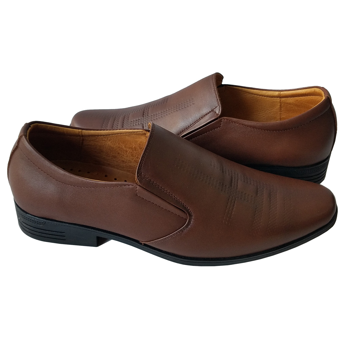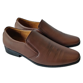 MÔ TẢ SẢN PHẨM: GIÀY TÂY NAM  – THANH LỊCH & TINH TẾ - Thiết kế sang trọng – Đơn giản mà đẳng cấp - Kiểu slip-on không dây, tiện lợi khi mang và tháo. - Form giày ôm vừa vặn, mũi tròn nhẹ giúp tôn dáng bàn chân. - Phong cách cổ điển pha hiện đại, phù hợp cho công sở, sự kiện hay gặp gỡ đối tác. - Chất liệu cao cấp – Bền đẹp theo thời gian - Thân giày làm từ da tổng hợp cao cấp, mềm mịn, bóng nhẹ, chống thấm nước nhẹ. - Lót trong êm ái, thoáng khí, tạo cảm giác dễ chịu khi di chuyển nhiều giờ. - Đế giày chắc chắn – Êm chân, bám tốt - Đế cao su chống trượt, độ ma sát cao, đảm bảo bước đi vững vàng. - Có độ đàn hồi tốt, giảm lực tác động khi di chuyển, giúp êm chân cả ngày dài. - Chi tiết tinh tế – Nâng tầm phong thái quý ông - Hai bên thân giày được thiết kế thun co giãn, giúp dễ mang và ôm chân chắc chắn. - Đường may sắc sảo, tạo nên vẻ hoàn thiện chuẩn chỉnh cho từng chi tiết. Phù hợp cho: - Doanh nhân, nhân viên văn phòng, giáo viên, hay người yêu thích phong cách lịch lãm. - Lý tưởng cho các dịp hội họp, phỏng vấn, sự kiện hoặc đi làm hằng ngày.