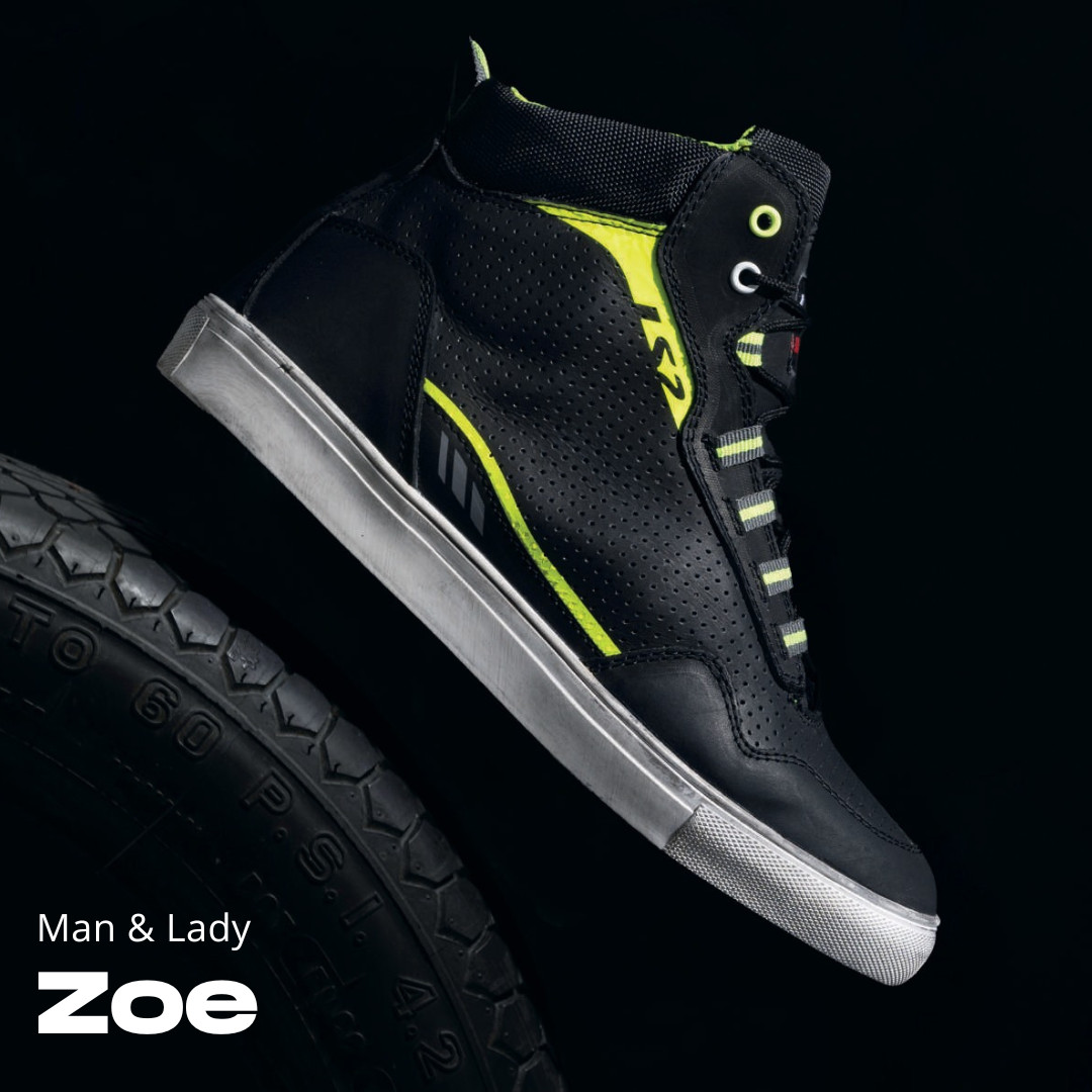 Giày bảo hộ moto LS2 Zoe Man hiện đang được công ty BBI phân phối với 2 màu sắc: Black H-V Yellow và Black Red, size từ 42-44.