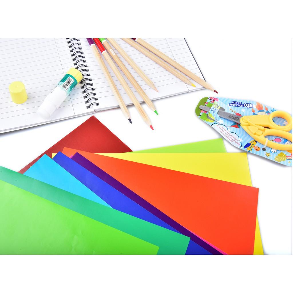 Giấy Thủ Công A4 -Decal (7Tờ/Xấp) Là bộ sản phẩm gồm 7 màu sắc nổi bật giúp các em học sinh hoàn thành tốt các bài tập thủ công cũng như phát huy khả năng