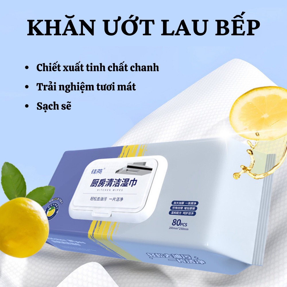 Khăn ướt lau bếp đa năng gói 80 tờ lớn giúp loại bỏ dầu mỡ Khăn giấy ướt lau nhà bếp đồ dùng nội thất siêu dai an toàn da tay