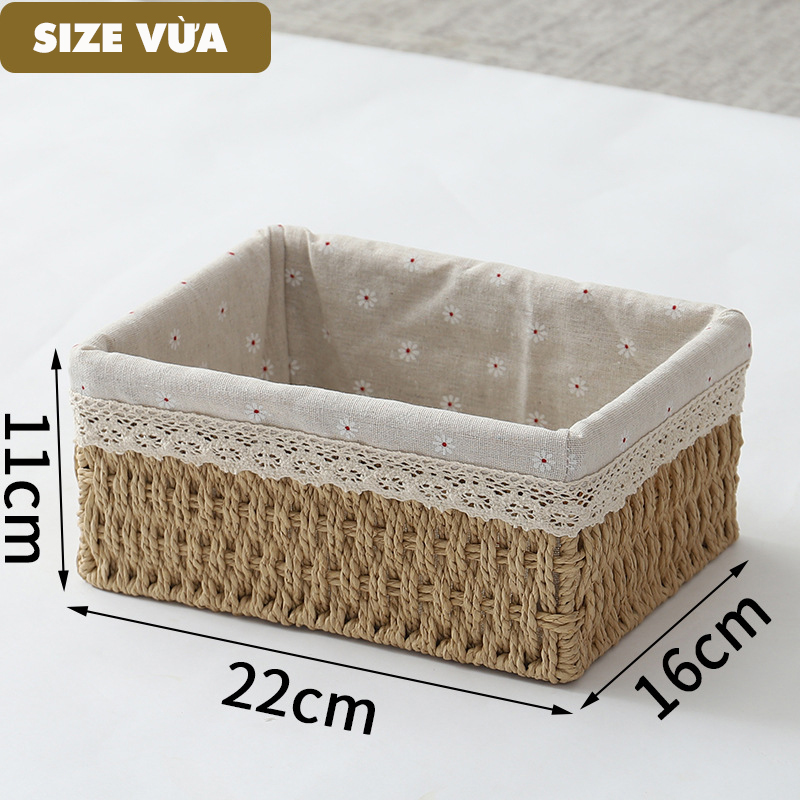 Giỏ cói đựng mỹ phẩm, đựng đồ văn phòng phẩm để bàn, decor chụp ảnh sản phẩm lót vải vintage (Giỏ Mây Mềm)