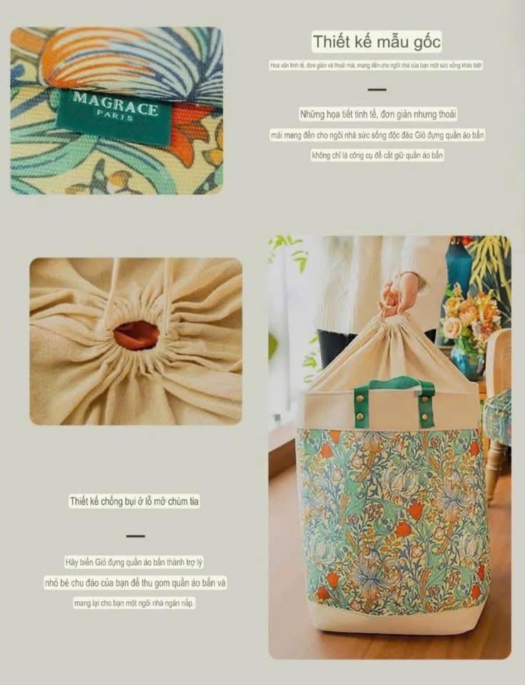 Quần áo bẩn để trong nhà vệ sinh thường lộn xộn, gây mùi khó chịu, việc lưu trữ và phân loại chúng trước khi giặt là cực kỳ cần thiết. Túi tote đựng quần áo