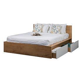 Mua tại TiktokKhung giường MFC phủ melamine màu vân gỗ + Vạt giường MDF phủ màu trắng Kính thước phủ bì D2070 X R1820 X C350/800 (mm) + 2 hộc kéo bên hông giường Qúy khách Sử dụng nệm R1600 x D2000 (mm) (KHÔNG BAO GỒM NỆM , DRA TRÃI GIƯỜNG , GỐI & ĐỒ TRANG TRÍ )