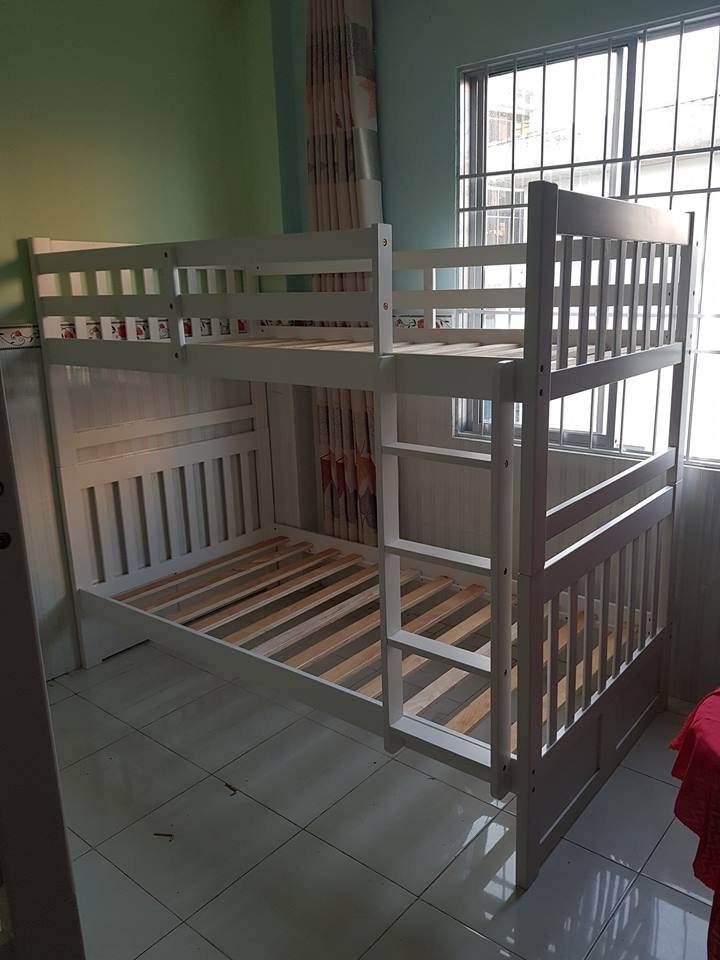 + Chất liệu: Khung giường gỗ thông Newzealand, phân tầng, Vách, đáy hộc gỗ công nghiệp, thang giường MDF chịu lực + Kích thước: kích thước phủ bì, tầng trên ưới 1mx2m Giường tầng hộp