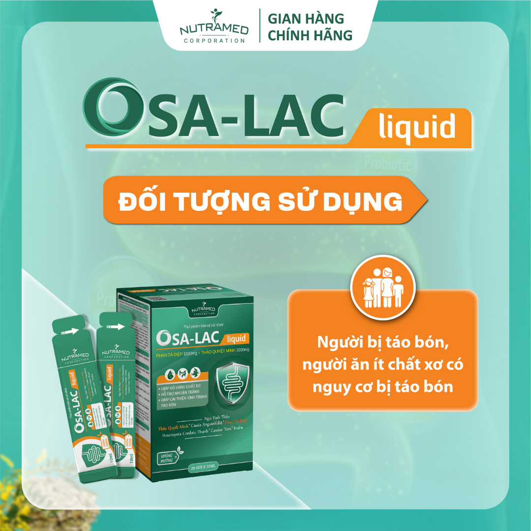 OSA - LAC LIQUID - Giúp bổ sung chất xơ. Hỗ trợ nhuận tràng. Cải thiện táo bón THÀNH PHẦN ️ Phan tả diệp (Cassia angustifolia), Ngư tinh thảo (Houttuynia cordata Thunb), Thảo quyết