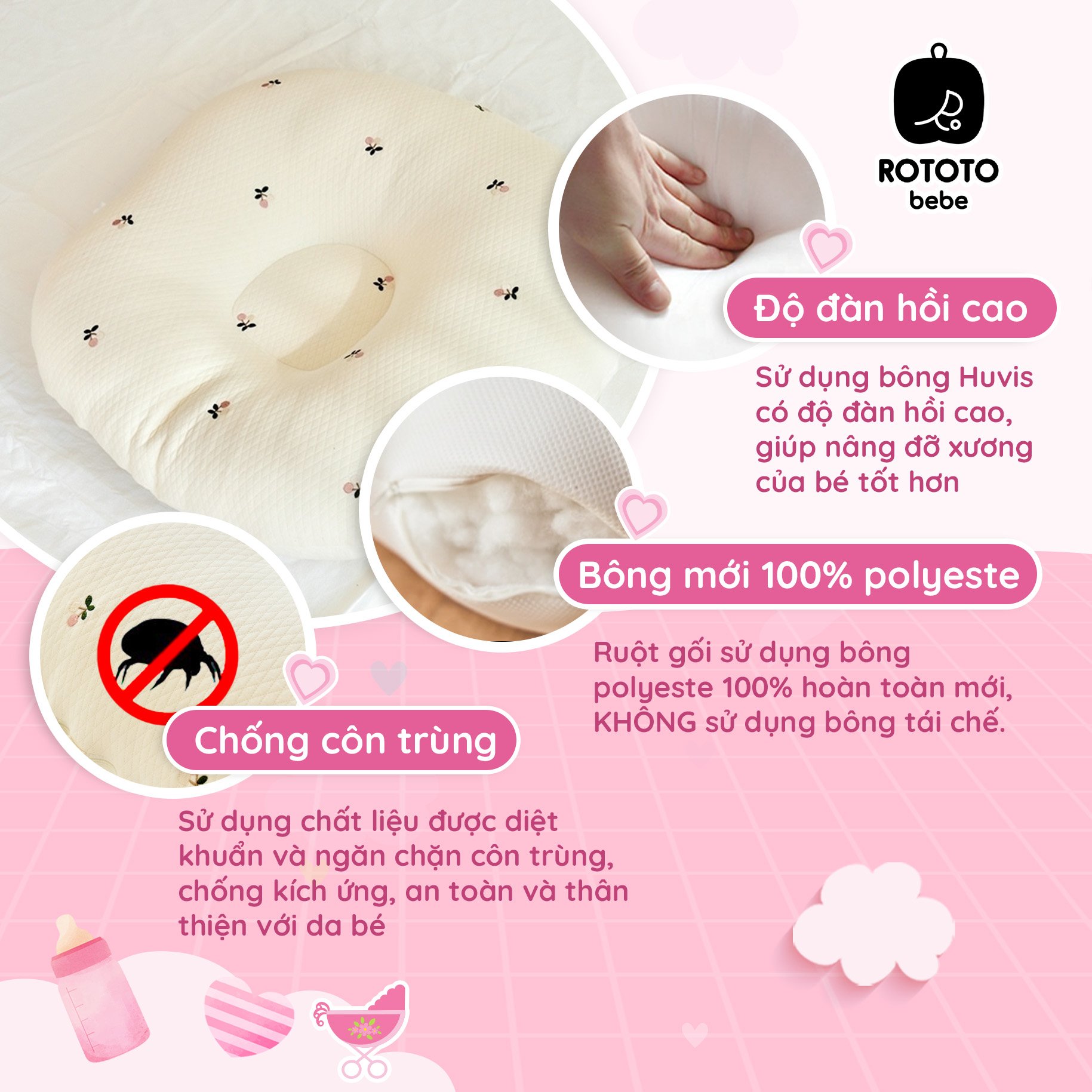 Gối đầu cho bé sơ sinh bồng bềnh như mây !!! Cùng với sự yêu thương con nhỏ, quan tâm tới từng giấc ngủ con yêu. Để cho con những giấc ngủ bình yên,