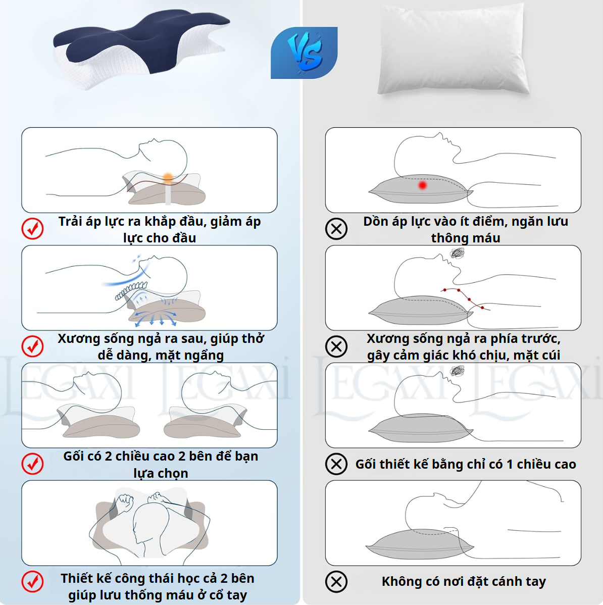 Mua tại TiktokĐIỂM ĐẶC BIỆT CỦA SẢN PHẨM: Thiết kế chuẩn công thái học theo khoa học giúp nâng đỡ phần đầu và phẩn cổ vai gáy Gối có 2 đầu cao thấp: đầu cao dành cho người bị ngủ ngáy, người muốn gối cao và vẫn đảm bảo đỡ phần cổ vai gáy; đầu gối thấp cho người thoái hóa đốt sống cổ và người muốn ngủ nhanh đi sâu vào giấc ngủ Hai bên của gối được thiết kế cao hơn để đảm bảo khi nằm nghiêng giữ cho phần đầu cổ vai gái tạo thành một đường thẳng tránh tình trạng nghẹo cổ khi thức dậy vào buổi sáng; đảm bảo cột sống được giữ ổn định đúng theo đường cong sinh lý cột sống; Thiết kế xẻ rãnh 2 bên sườn gối giúp khi ngủ có thể vươn 2 tay lên trên đầu tạo cảm giác thoải mái và dễ chịu. THÔNG TIN SẢN PHẨM: