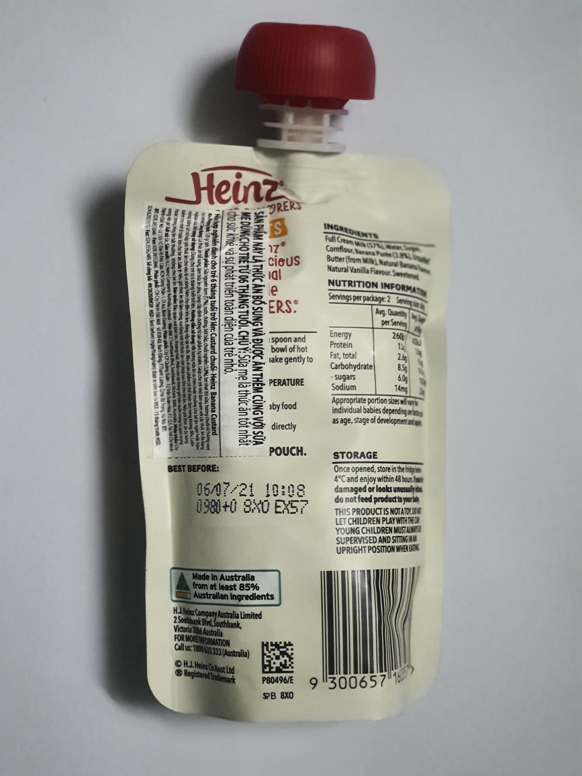 2/Nếu gói thức ăn đã được làm nóng, vui lòng vứt bỏ phần thừa sau khi cho bé ăn.