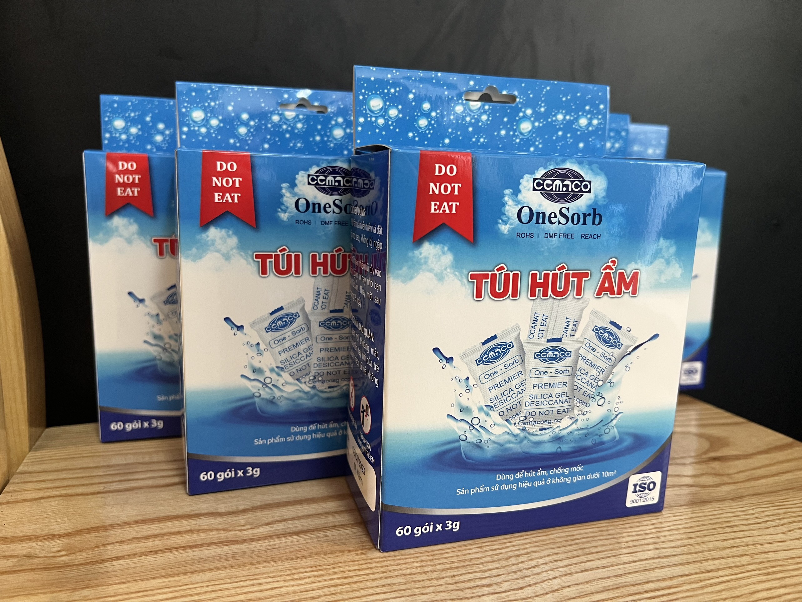 Hộp gồm 60 gói hút ẩm x 3g Silicagel, đặt trong tủ quần áo, máy ảnh, tủ giày dé Sản xuất đóng gói bởi CemacoSG đạt tiêu chuẩn ISO 9001:2015 uy tín hơn 20 năm,