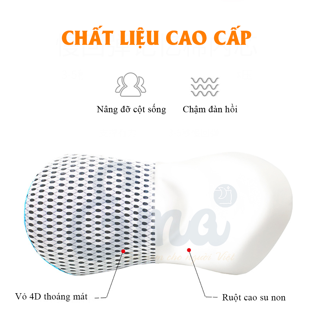CÔNG DỤNG CỦA GỐI KÊ LƯNG EMA Giảm đau mỏi lưng dưới (vùng thắt lưng và eo) đặc biệt với đối tượng bà bầu, người cao tuổi, người thường xuyên phải mang vác hoặc cúi người khi làm việc Phòng và trị liệu các bệnh cột sống thắt lưng như thoát vị đĩa đệm Kê lưng thư giãn khi ngủ, tựa lưng hoặc đầu khi đặt trên ghế văn phòng hoặc ghế ô tô ĐIỂM NỔI BẬT CỦA GỐI KÊ LƯNG EMA Thiết kế chuyên biệt theo công thái học cho cột sống thắt lưng, phù hợp cả tư thế nằm ngửa hoặc nằm nghiêng Chất liệu cao cấp với ruột gối cao su non, vỏ gối 4D siêu thoáng Đa dụng khi sử dụng được để nằm, kê đầu, tựa lư     GỐI KÊ LƯNG EMA GIẢM ĐAU MỎI THẮT LƯNG NHƯ THẾ NÀO? Đường cong sinh lý của cột sống là đường cong cột sống ở người bình thường. Ở người bình thường thì khi nhìn cột sống từ bên thì cột sống uốn cong theo đường cong cơ thể, hơi cong về phía trước ở phần cột sống thắt lưng. Chính điều này làm cho khi ngủ (đặc biệt khi nằm nghiêng) sẽ tạo ra khe hở, cột sống thắt lưng ở trạng thái treo cong. Đối với những người thường xuyên mang vác vật nặng, làm việc cúi người hoặc người thoát vị đĩa đệm tư thế này sẽ gây đau, mỏi vùng thắt lưng Gối kê lưng Ema với thiết kế theo công thái học cột sống giúp người sử dụng "lấp đầy" vùng hẫng này, từ đó giải phóng áp lực lên cột sống thắt lưng, giúp cột sống luôn theo đường cong sinh lý của cơ thể (trạng thái tự nhiên nhất) 3 điểm đánh dấu trên ảnh vừa khít vào phần cột sống thắt lưng  Thiết kế của gối đặc biệt với 3 điểm tiếp xúc A,B & C: A & C - nâng đỡ eo khi nằm nghiêng B - nâng đỡ cột sống jhi nằm thẳng Từ đó giúp cho người sử dụng thoải mái dù nằm thẳng hay nằm nghiêng       THÔNG SỐ SẢN PHẨM Kích thước: Dài 46cm rộng 23cm cao 11cm. Kích thước này đảm bảo người sử dụng có thể đặt cả phần eo - thắt lưng trên gối dù nằm ngửa hay nằm nghiêng Trọng lượng: 500g Ruột gối: Được làm từ 100% cao su non với đặc tính đàn hồi chậm, giúp lấp đầy một cách êm ái vùng thắt lưng khi bạn nằm lên, từ đó giảm áp lực và giảm đau lên khu vực này.  Memory Foam (cao su non) với đặc tính chậm đàn hồi là vật liệu do trung tâm vũ trụ NASA phát minh vào năm 1966 nhằm nâng cao sự an toàn cho các phần nệm của thiết bị bay nhằm giảm thiểu tối đa áp lực tác động lên các phi hành gia và rung chấn trong quá trình phóng tàu vũ trụ. Ngày này chất liệu này được sử dụng rất nhiều trong ngành công nghiệp gối - đệm Vỏ gối: Vỏ gối được may từ chất liệu vài lưới 4D siêu thoáng mát, bề mặt có các lỗ hút khí, thấm hút mồ hôi giúp người sử dụng nằm cả đêm trên gối mà không gây cảm giác nóng, dính lưng. Vỏ gối có khóa kéo được may ẩn vừa tiện lợi vệ sinh dễ dàng vừa không ảnh hưởng đến thẩm mỹ của gối Màu sắc: gối có 2 màu trung tính phù hợp với cả nam, nữ tất cả các độ tuổi Màu xám đen Màu trắng xanh