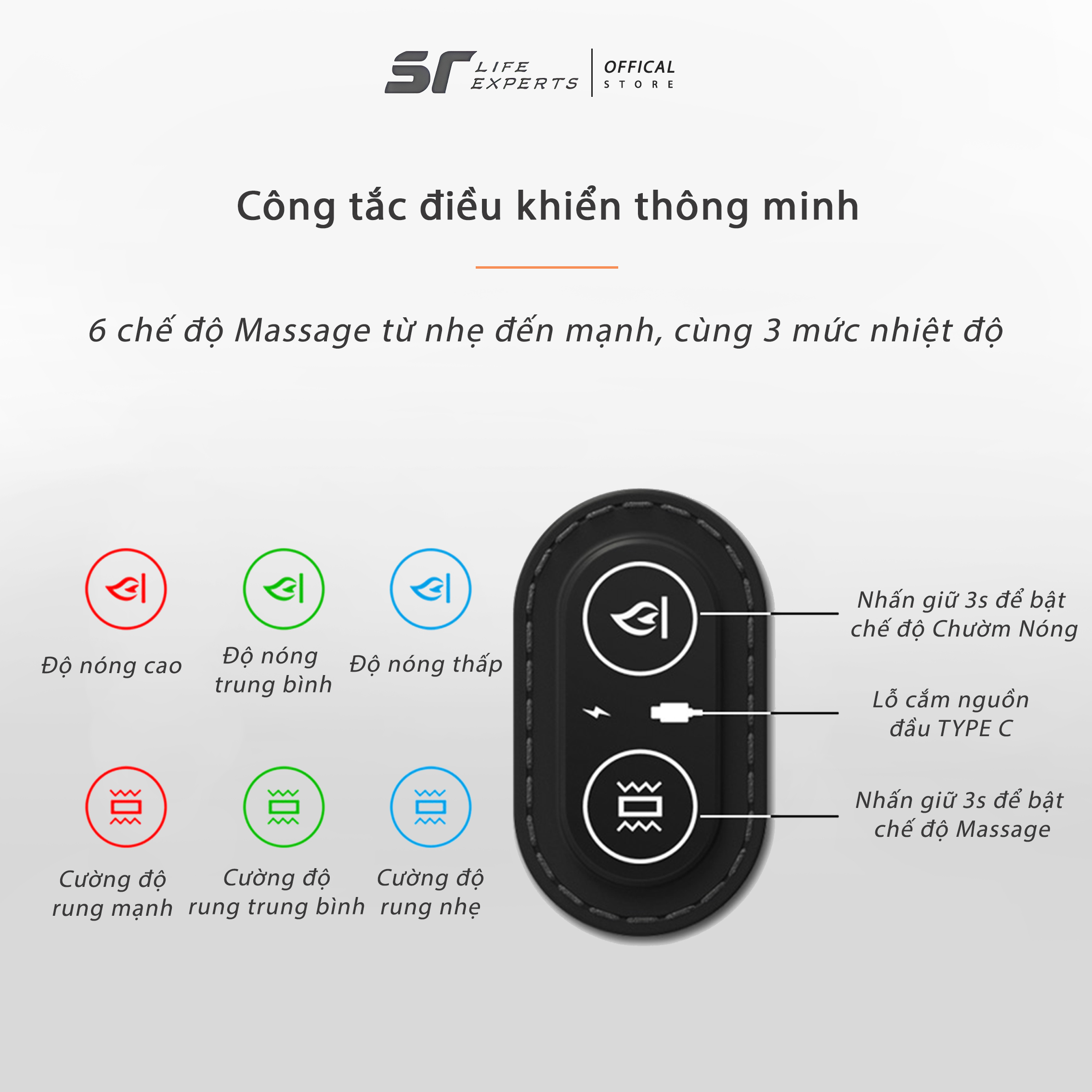 - Tựa lưng đổi vị trí: 6 chế độ massage & 3 mức nhiệt độ.