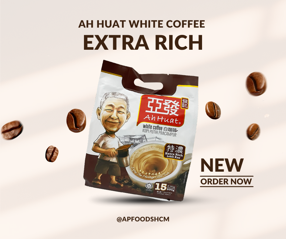 Với sản phẩm tươi sống, trọng lượng thực tế có thể chênh lệch khoảng 10%. Thông tin sản phẩm: - Tên: White Coffee - Extra Rich - Trọng lượng: 600g - Thương hiệu: Ah Huat